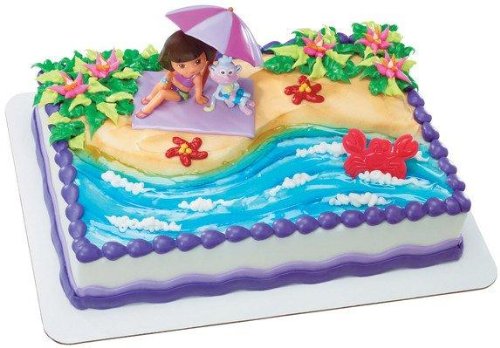 - Kit includes: Dora and Boots figures on plastic beach towel under the umbrella and a crab ring